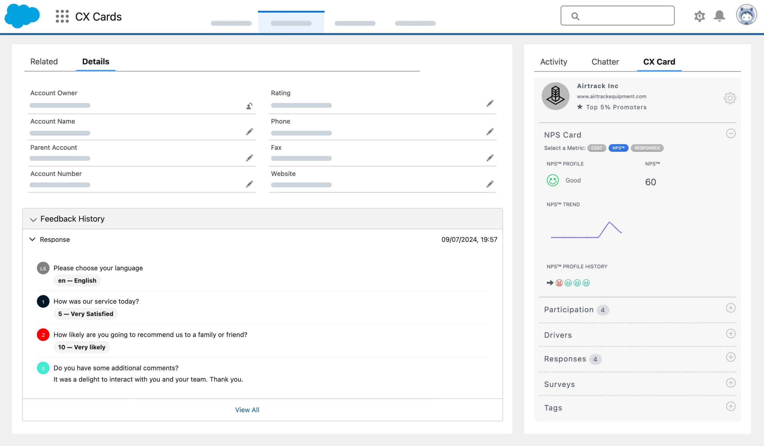 Whether you’re responding to a single issue or managing organization-wide satisfaction trends, CX Cards consolidates the entire customer experience—right inside your CRM.
