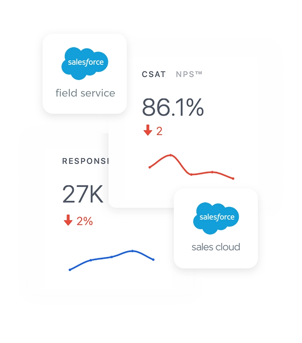 Track and analyze NPS and CSAT post-interaction with Service Cloud or Field Service.